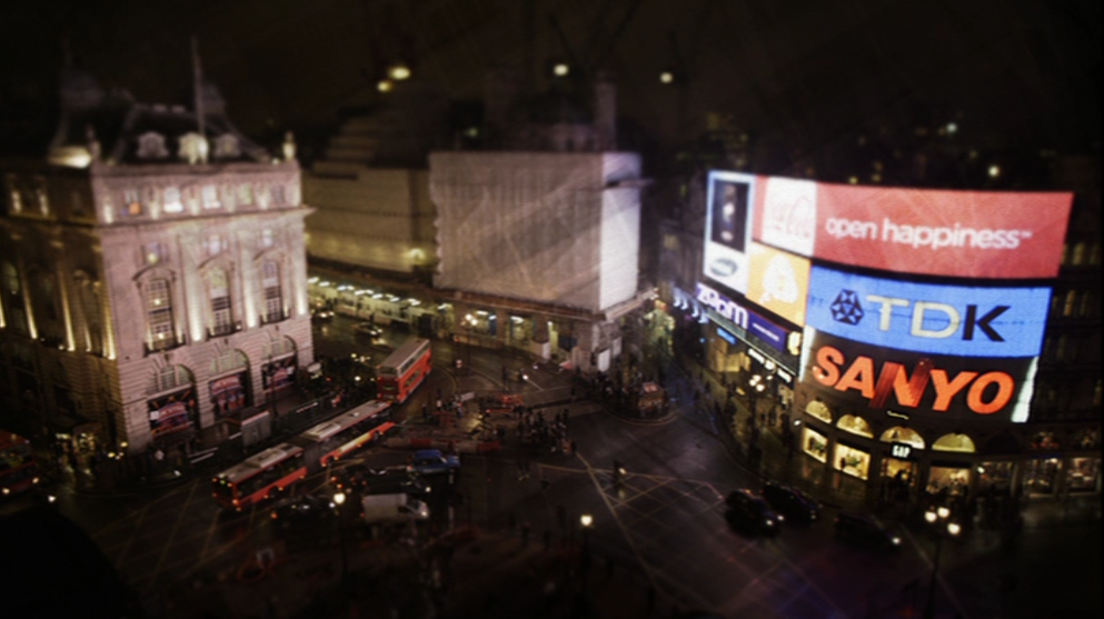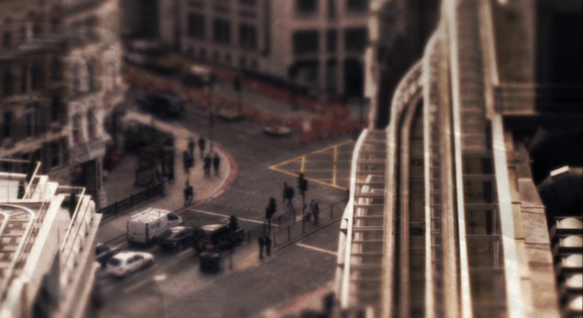 Var du en av dem som satt klistret da BBCs Sherlock ble sendt på norsk TV vinteren 2012, fikk du tilt shift-effekten servert både i tittelsekvensen og i mellomstikkene. Der ble den brukt i oversiktsbilder av et yrende London, både av Leicester Square på kveldstid og av byen i profil sett fra elva, med Millenniumshjulet som et markant landemerke.