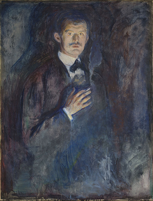 Jeg står og ser på den norske kunstneren A K Dolvens film portrait with cigarette (2000), en tydelig referanse bakover i historien. Både til Edvard Munchs Selvportrett med sigarett (1895) og til kvinner som opp gjennom årene har utfordret kjønnskategorier og utvidet sitt handlingsrom. Ved å koble referansene sammen inviterer filmen til et nysgjerrig blikk tilbake på Munchs selvportrett.