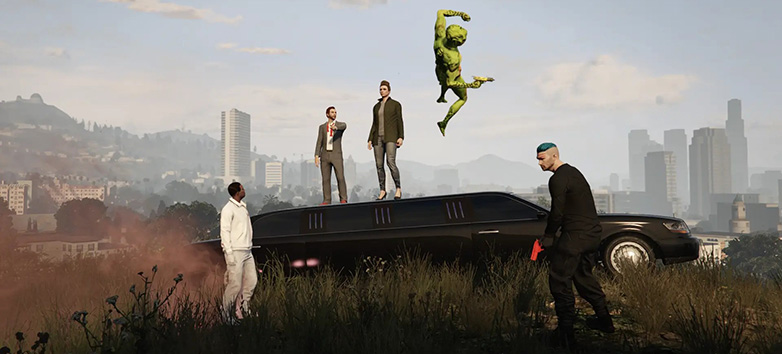 En sommerdag åpner jeg MUBI og finner en ny hybriddokumentar. Den heter Grand Theft Hamlet (Sam Crane og Pinny Grills, 2024), og handler om et par skuespillerkompiser, Sam (Sam Crane) og Mark (Mark Oosterveen) som står uten arbeid under koronapandemien. For å få tiden til å gå kødder de rundt i onlinelobbyer i dataspillet Grand Theft Auto V (GTA V). Og når de finner et amfiteater tilsvarende den virkelige Hollywood Bowl (spillet er lagt til et fiktivt Los Angeles kalt Los Santos) bestemmer de seg for å iscenesette en virtuell forestilling av Hamlet. Dette virker som en god og original idé inntil kompisene innser at de må samarbeide med de andre som spiller GTA V, og alle som har tilbragt tid i Los Santos vet at de andre spillerne man møter i all hovedsak oppfører seg som skytegale psykopater.